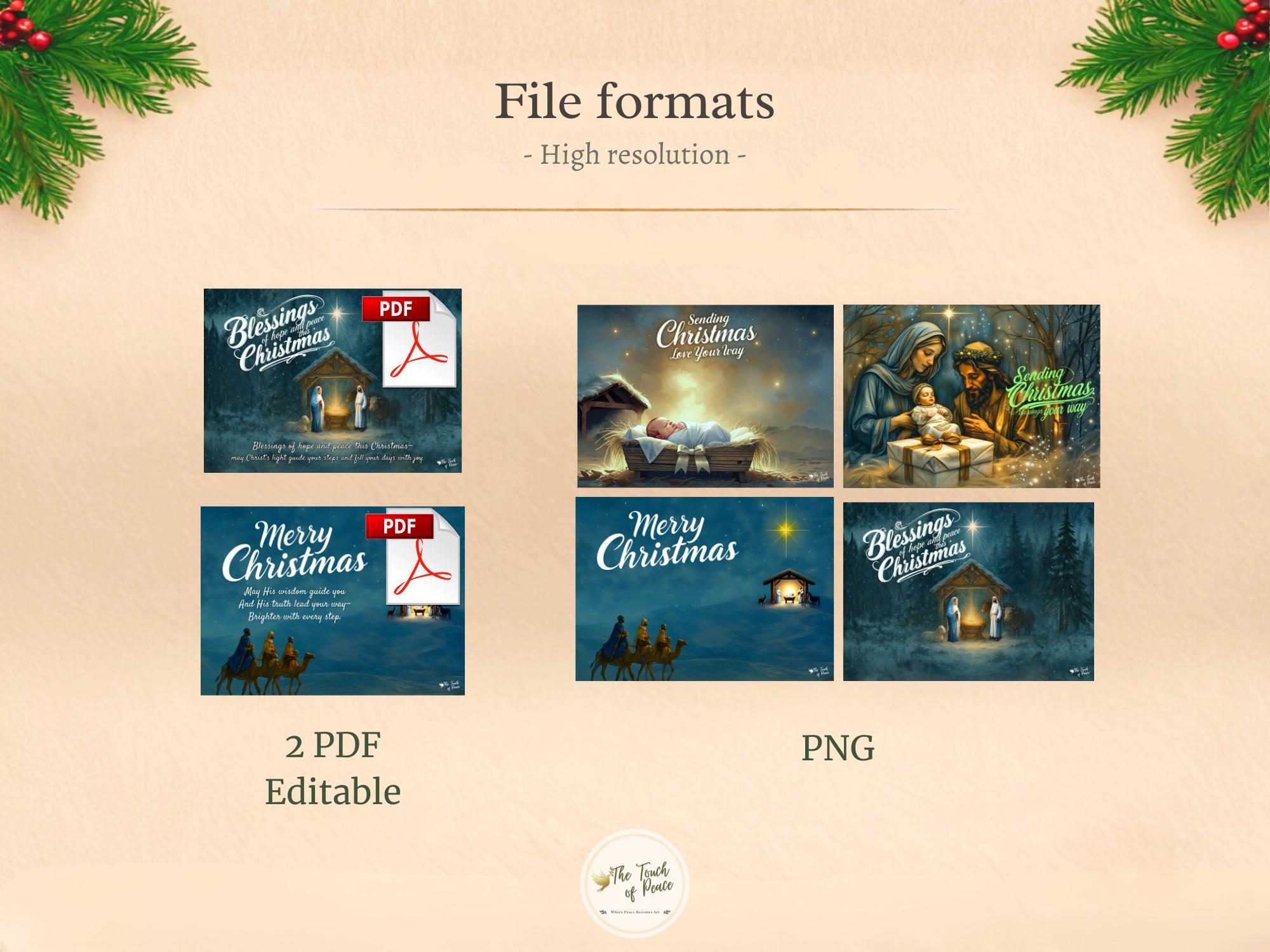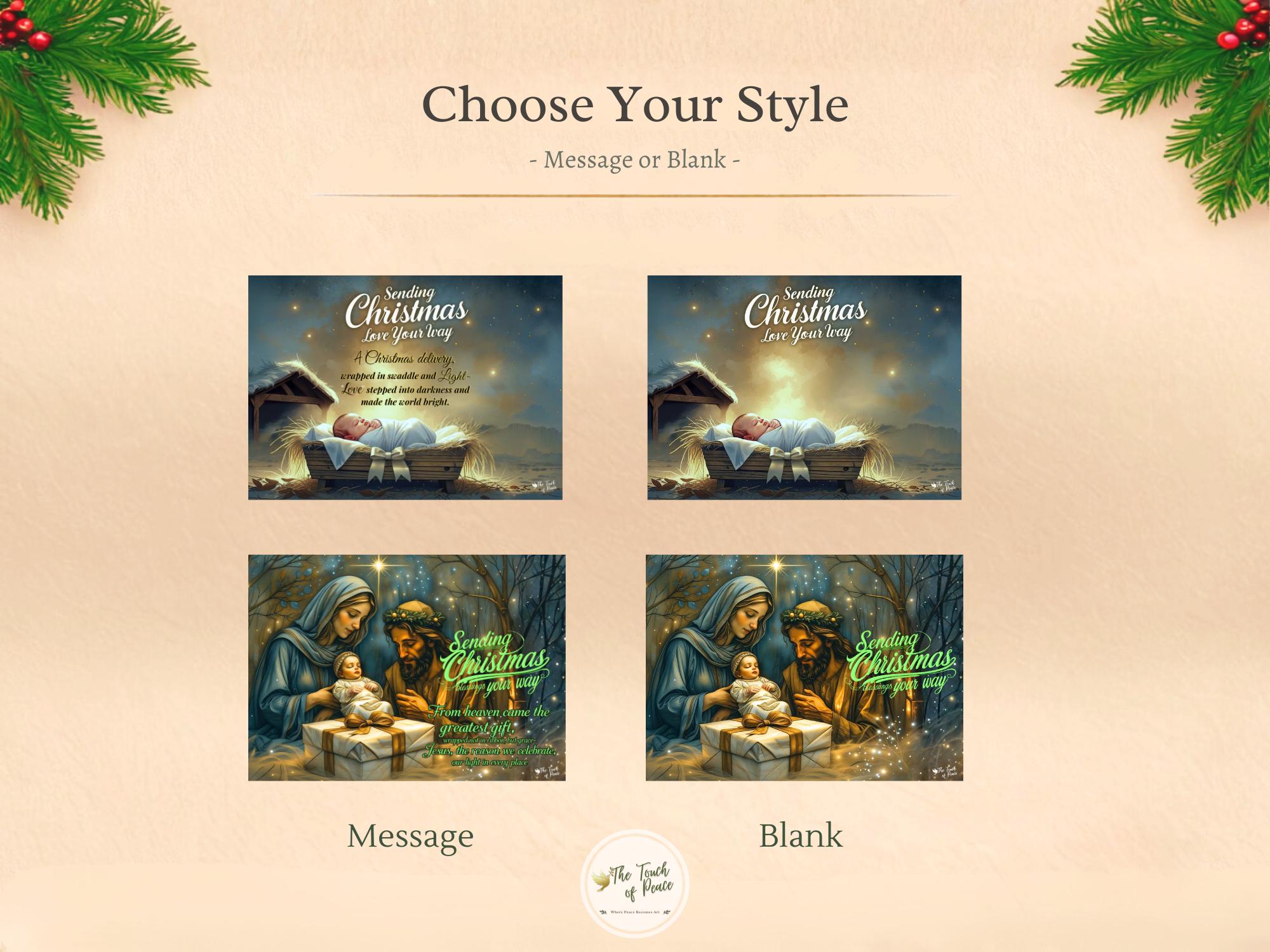 Share the true meaning of Christmas with this faith-inspired Nativity card bundle. This set includes 8 printable Christmas cards, thoughtfully designed to offer both message-ready and blank options.